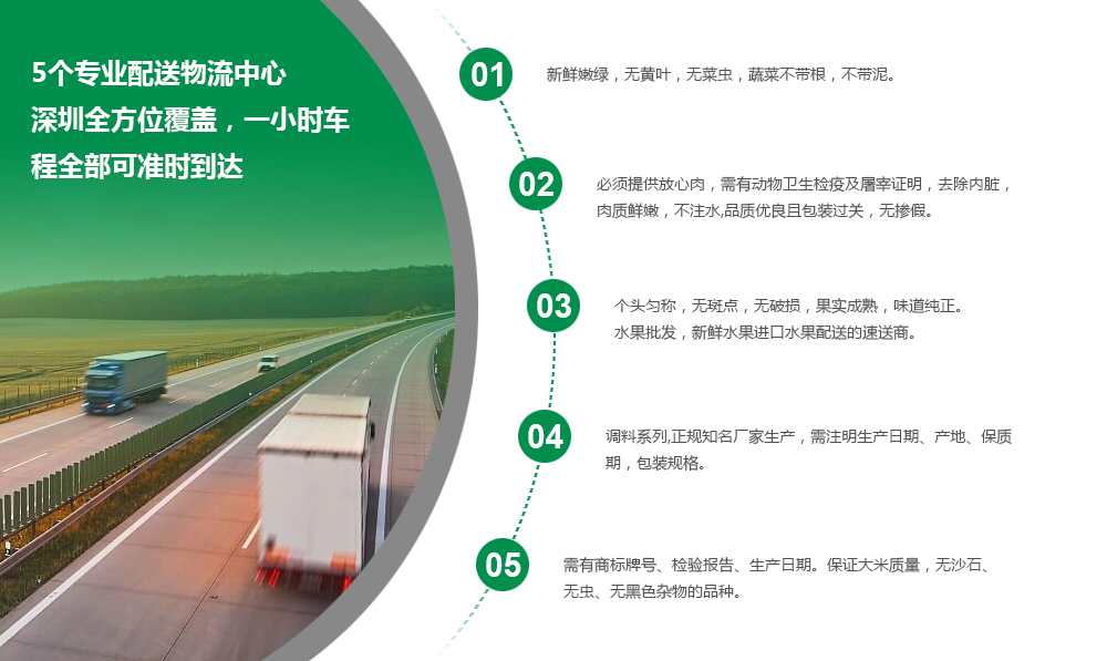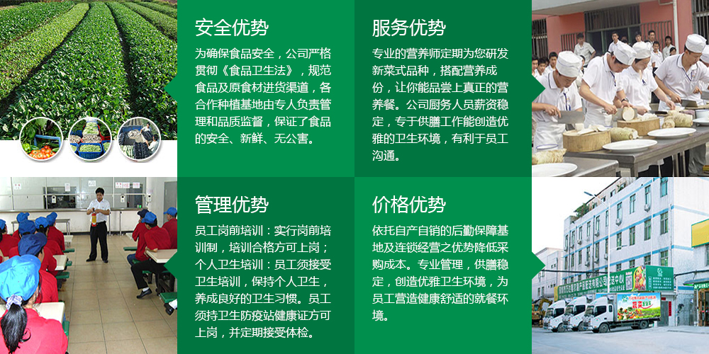 我們?cè)诖_保質(zhì)量,快捷的基礎(chǔ)上,虛心接受顧客的建議和意見(jiàn),切實(shí)加強(qiáng)廚師的培訓(xùn)工作,不斷推出綠色且營(yíng)養(yǎng)的產(chǎn)品,竭盡全力滿(mǎn)足顧客的需求,從而贏得廣大顧客的肯定和信任,同時(shí)也得到了各級(jí)領(lǐng)導(dǎo)的認(rèn)可。公司配送的農(nóng)產(chǎn)品等物資,均來(lái)源于正規(guī)場(chǎng)所 ,蔬菜類(lèi)食品均經(jīng)檢驗(yàn)均達(dá)到無(wú)公害、無(wú)殘余農(nóng)藥、無(wú)對(duì)人體有害物質(zhì)或重金屬污染等各項(xiàng)指標(biāo)方可配送。根據(jù)客戶(hù)不同需求按時(shí),按量送貨。
